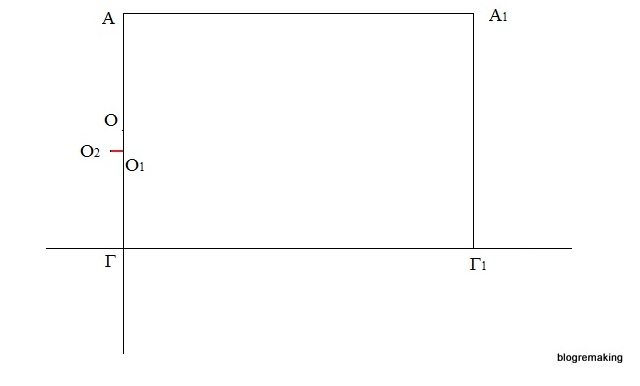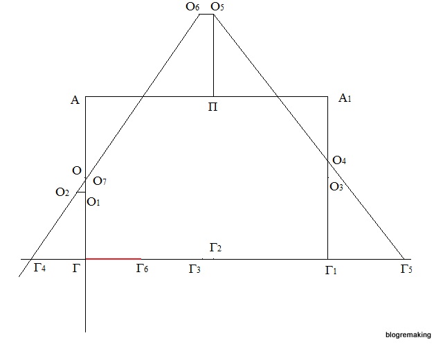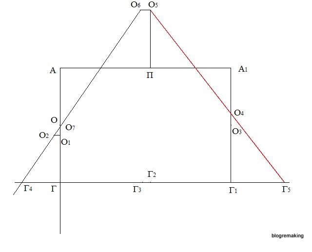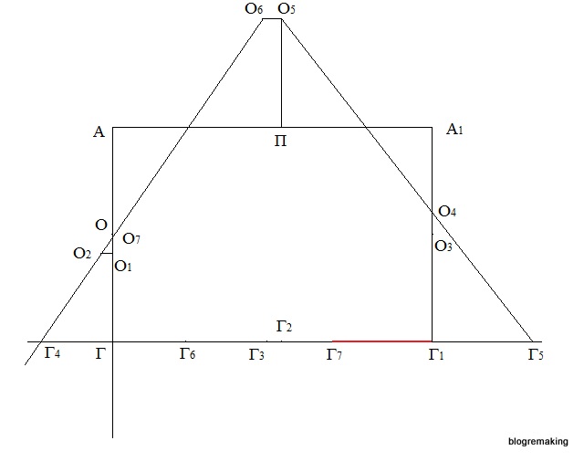 Разделим отрезок А1Г1 пополам, поставим точку О3, а вверх от этой точки отложим 2,5см и получим точку О4 (О3О4=2,5см).