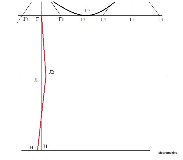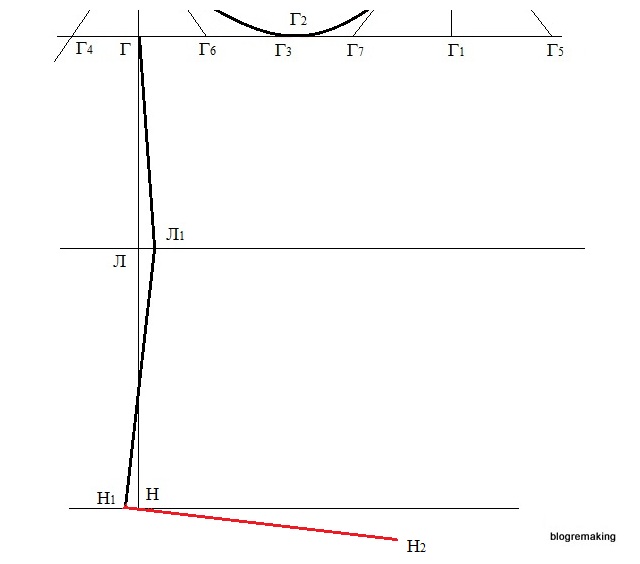 Теперь измерим отрезок Г1Г5 и отложим эту величину влево от точки Г1 и поставим точку Г7 (Г7Г1=Г1Г5).