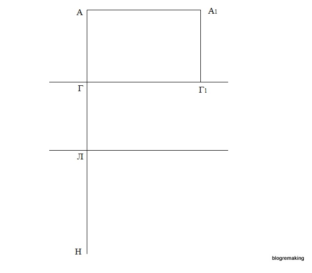 Измерим отрезок Л1Л5 и эту величину отложим влево от точки Л1 по горизонтали и получим точку Л6 (Л6Л1=Л1Л5).