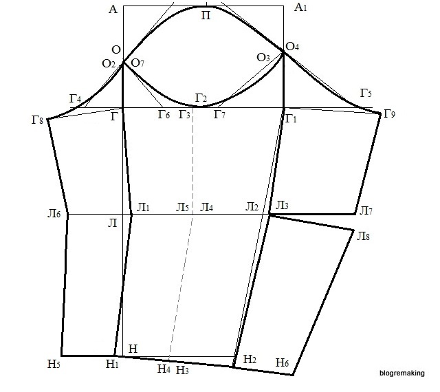 Ломаная прямая О7,Г, Л1, Н1 - передний перекат рукава.