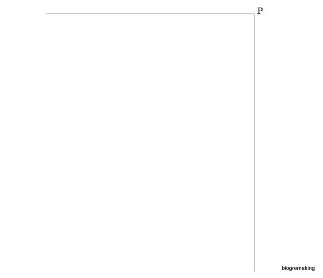 Сетка чертежа. В правом верхнем углу листа начертим прямой угол с вершиной в точке Р.
