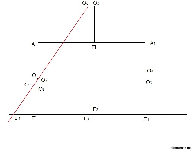 Из точки О6 проведем прямую через точку О2 до пересечения с прямой, проходящей через точку Г, а точку пересечения обозначим Г4, при этом отрезок АГ эта прямая пересечет в точке О7.